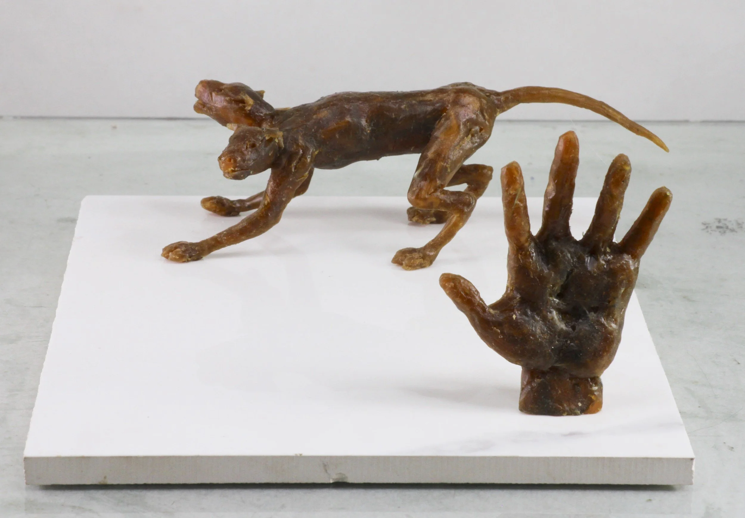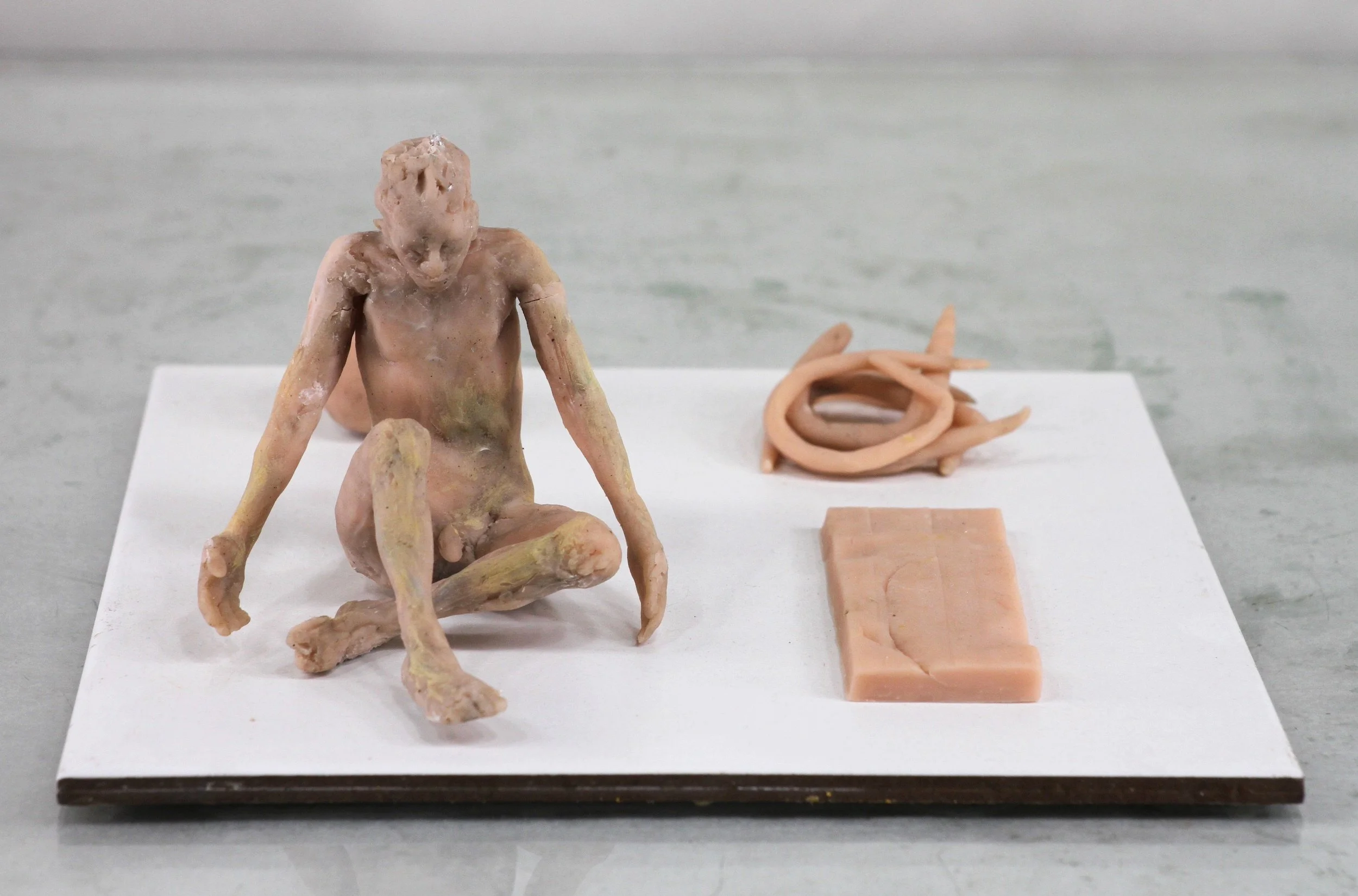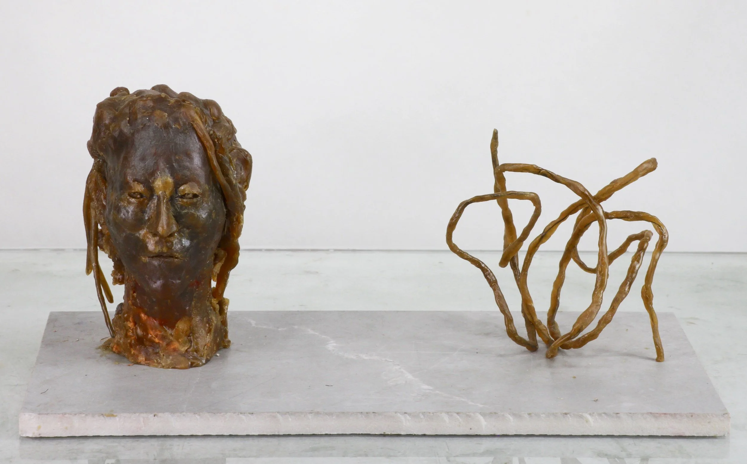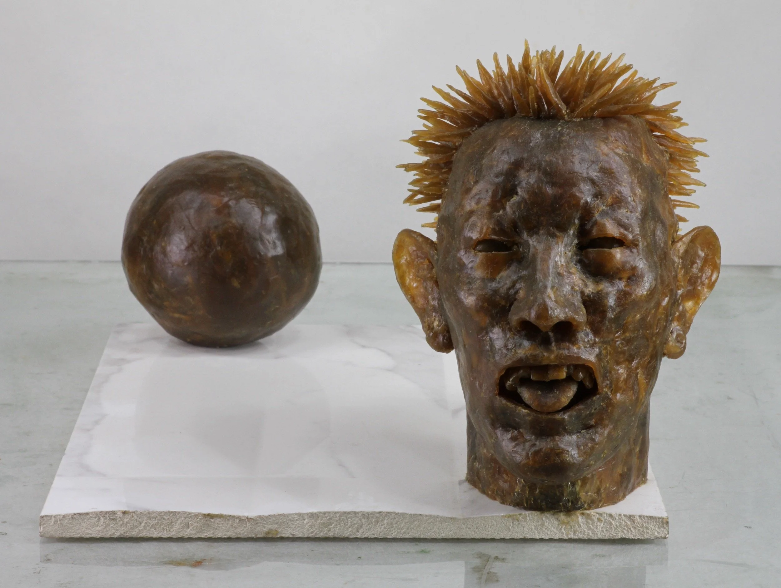 Wax, polymer clay, ceramic base, 3 3/4 x 7 13/16 x 7 13/16 inches
