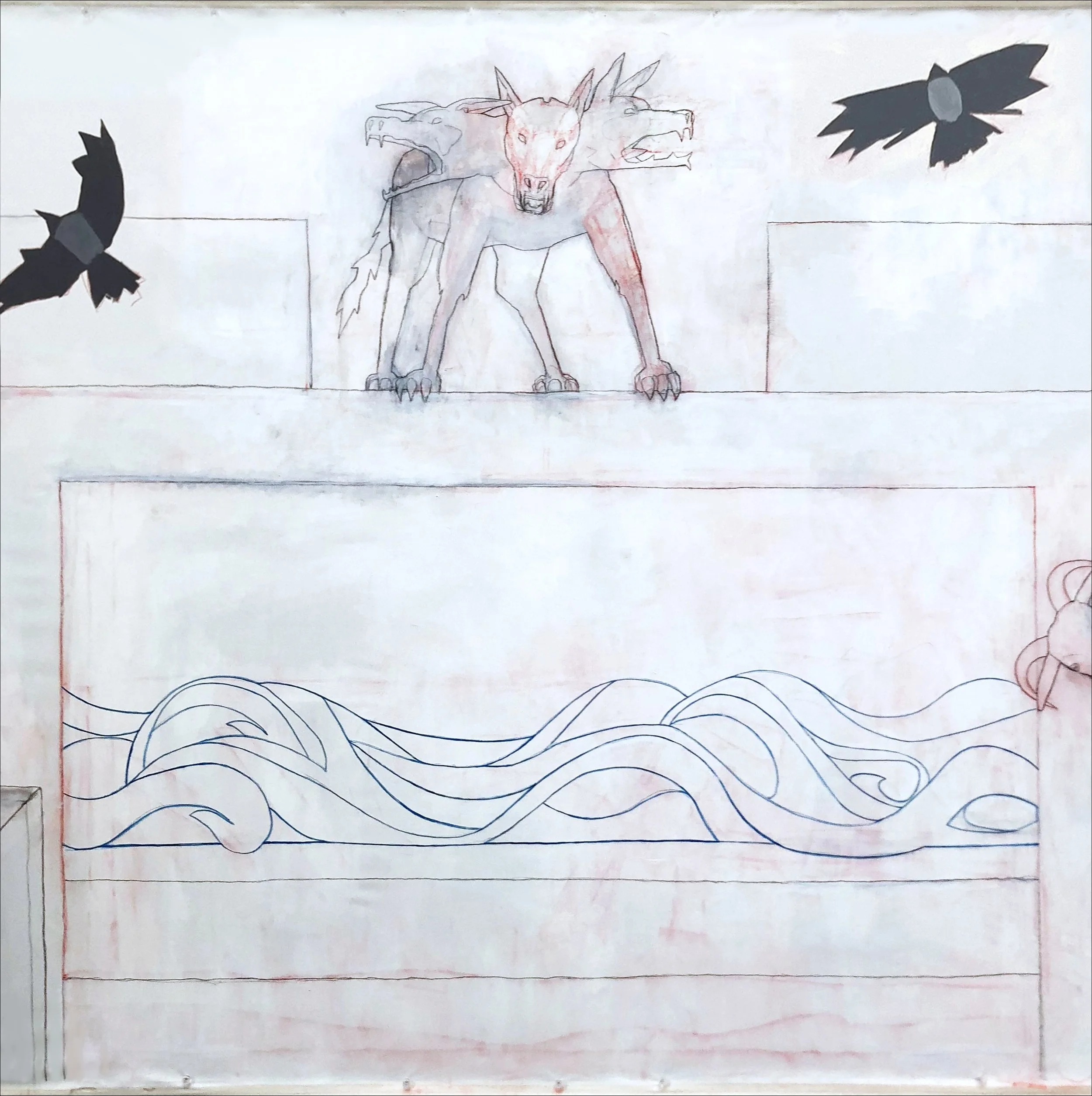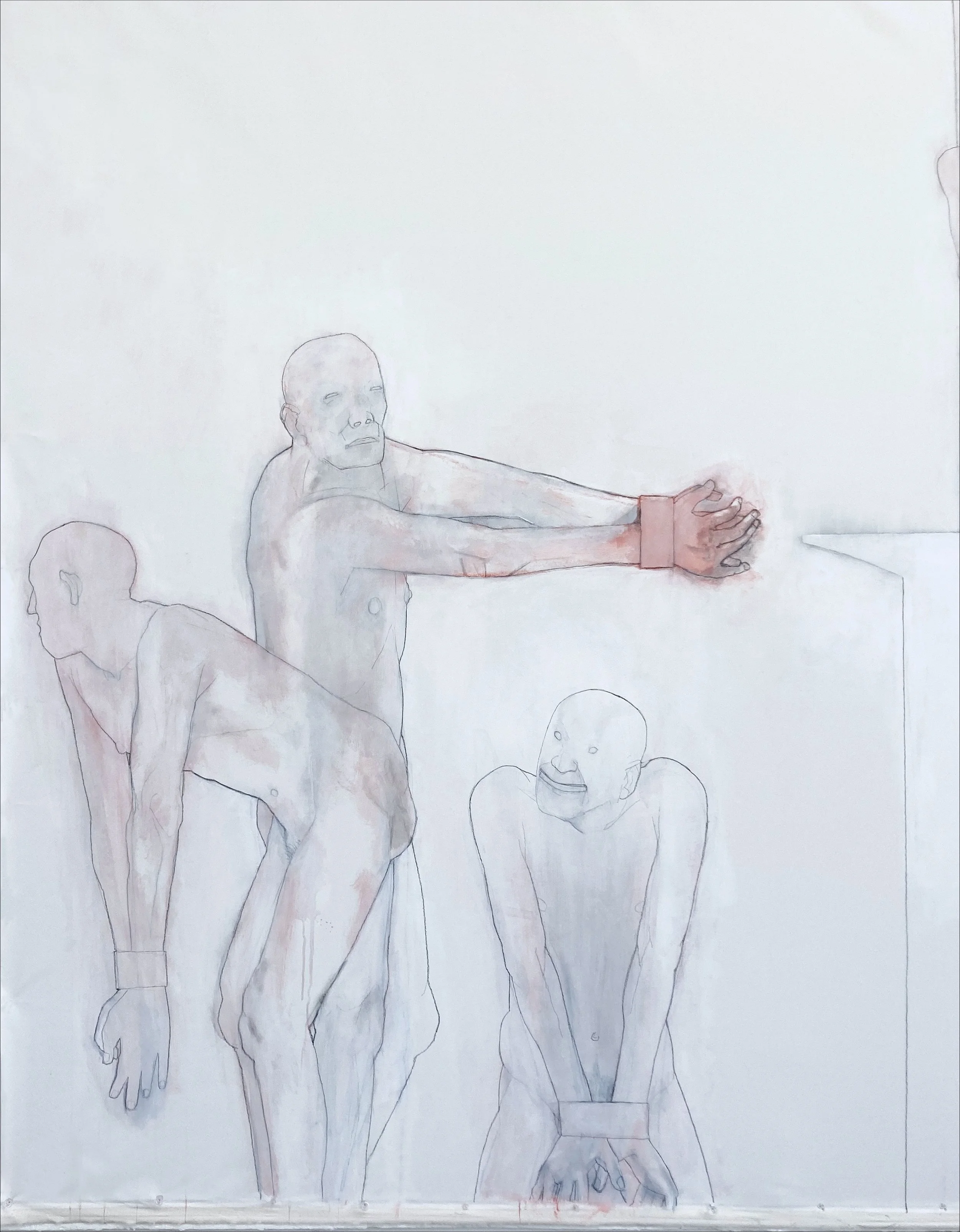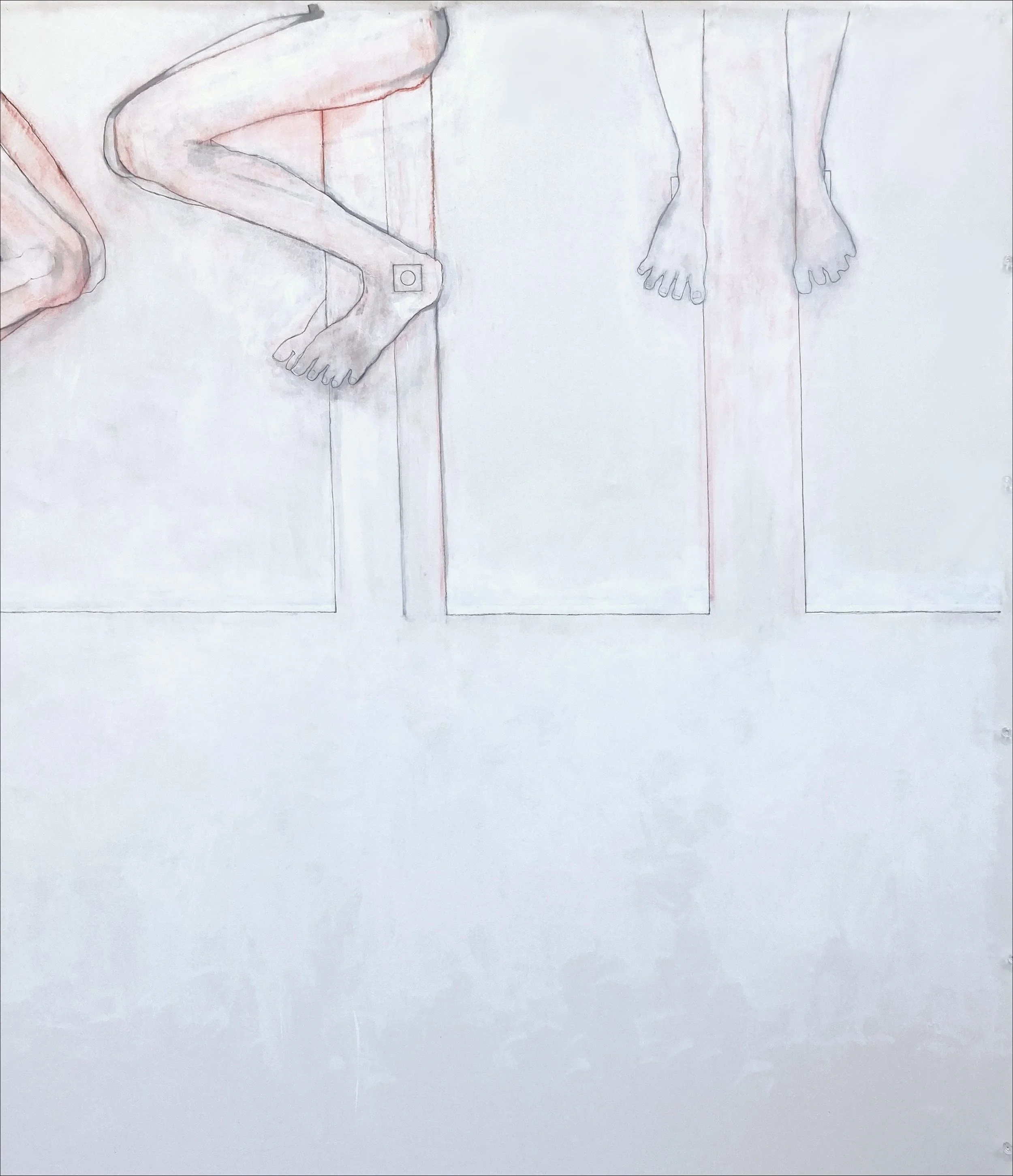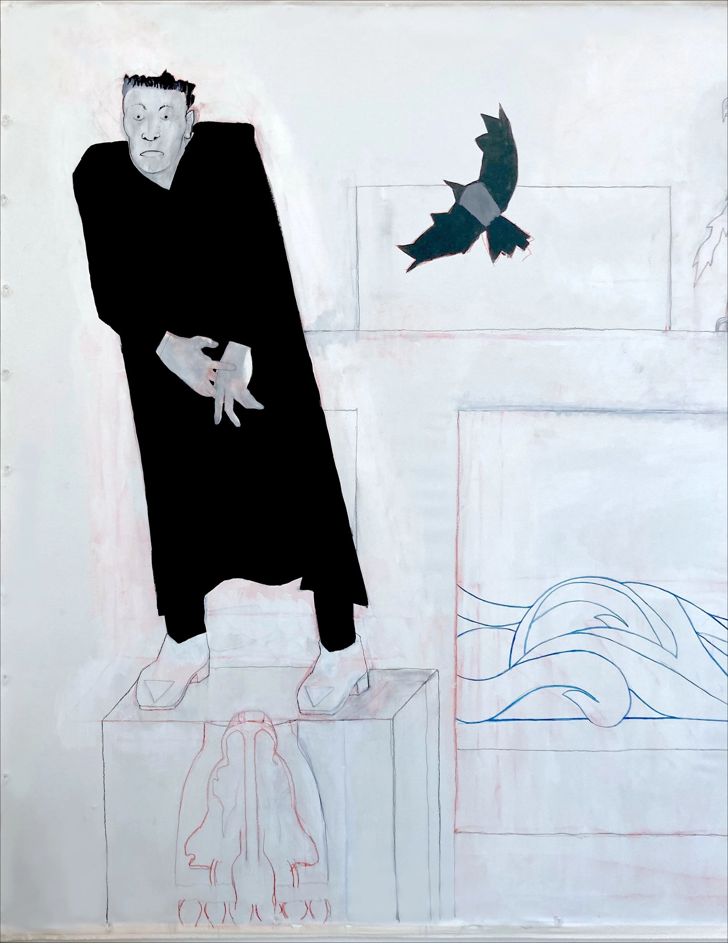 Flashe, gesso, acrylic, chalk, and graphite on canvas, 82 × 197 inches